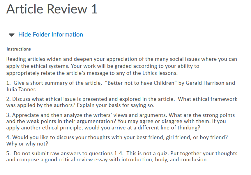 Article Review 1 Hide Folder Information Instructions Chegg Com